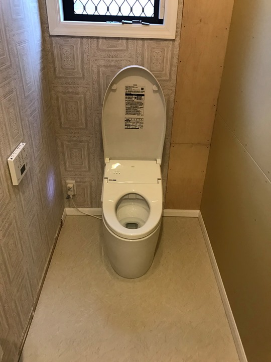 総合設備Leftyのページを見て頂き有難う御座います。 本日は先行で移設したTOTOのネオレストの取り付けと2階汚水立管に通気弁を取り付けました。 1階トイレは、将来車いす使用に対応出来る様幅を広げた為、給排水管を移設致しました。 2階汚水立管の通気弁取り付け理由としては、2階トイレの汚水管が玄関上を通り外部立管に接続されていたので、まず1階天井内で防音排水管専用のシートを施工し天井用防音シート・断熱材・石膏ボード2枚張り、そして最後に通気弁を外部に取り付け作業完了です。 2階のトイレもネオレストなので高圧で水を流す音が響いていたのですがほぼ聞こえなくなりました! ちなみにトイレの内装完了前に器具を取り付けてありますが・・・ 壁紙が海外からの取り寄せなので仮で今回は取り付けました。Link:https://www.facebook.com/1968948799993330/posts/2308348002720073/