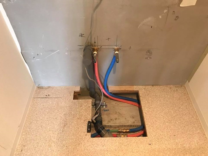 マンションの全面リフォームの為に配管の移設を行いました。 器具の取り付け等は、内装工事が完了してか...