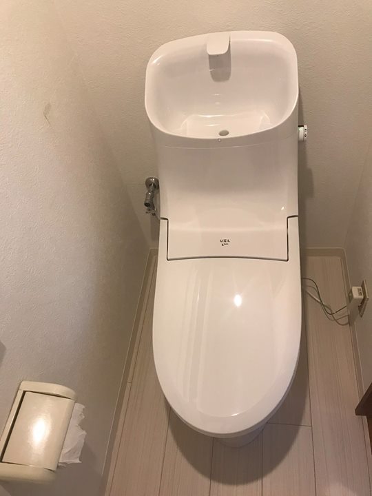 トイレの交換工事を行いました。取り付けた機種はLIXILの新型の機能一体型便器です。工事は内装工事も同時に行ったので半日でした。お客様から、ト...