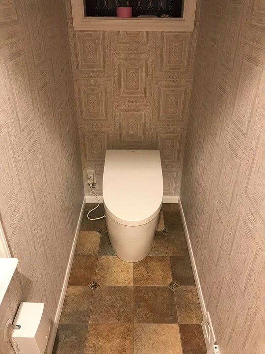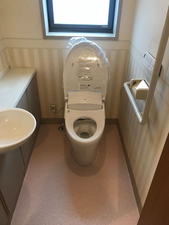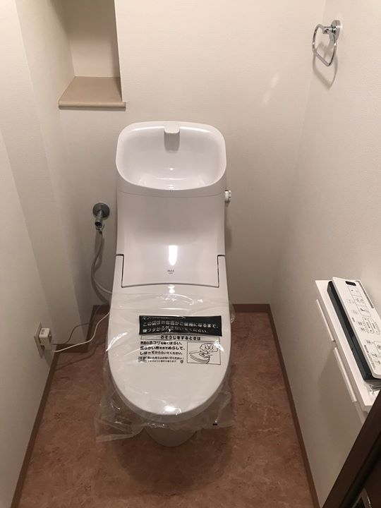 トイレ交換工事を行いました。器具はLIXILの一体型便器EX型です。交換時間は内装工事が床クッションフロアの張替えのみでしたので3時間程度の工事...